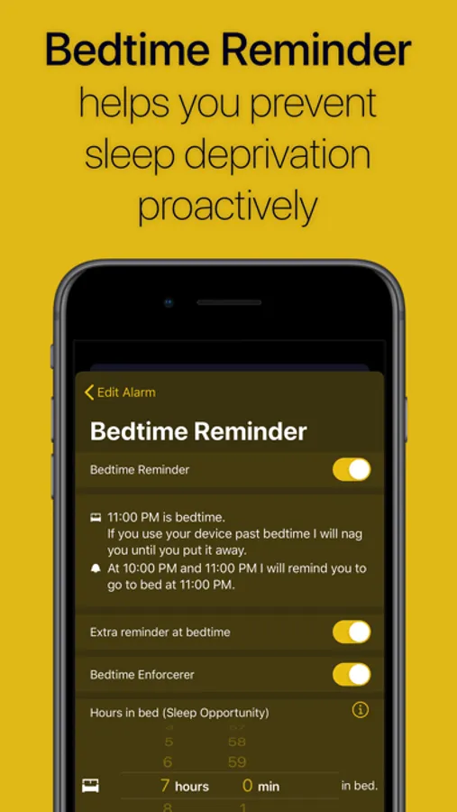 * Bedtime Reminder helps you prevent sleep deprivation proactively