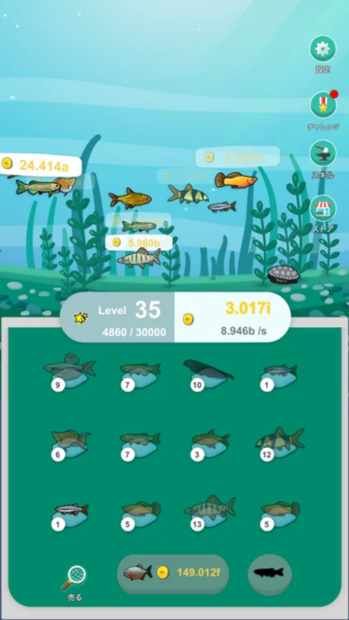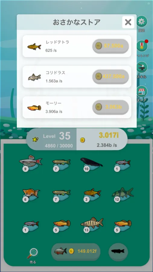 持っているコインと相談しながら好きな熱帯魚を買ってみましょう。