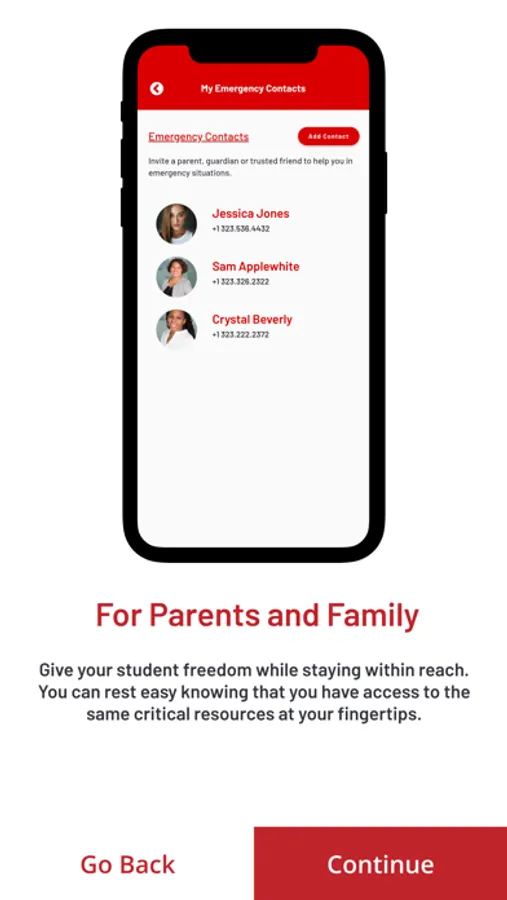 - Access To National Hotlines including RAINN (National Sexual Assault Hotline), National Suicide and Crisis Lifeline, National Poison Control Center.