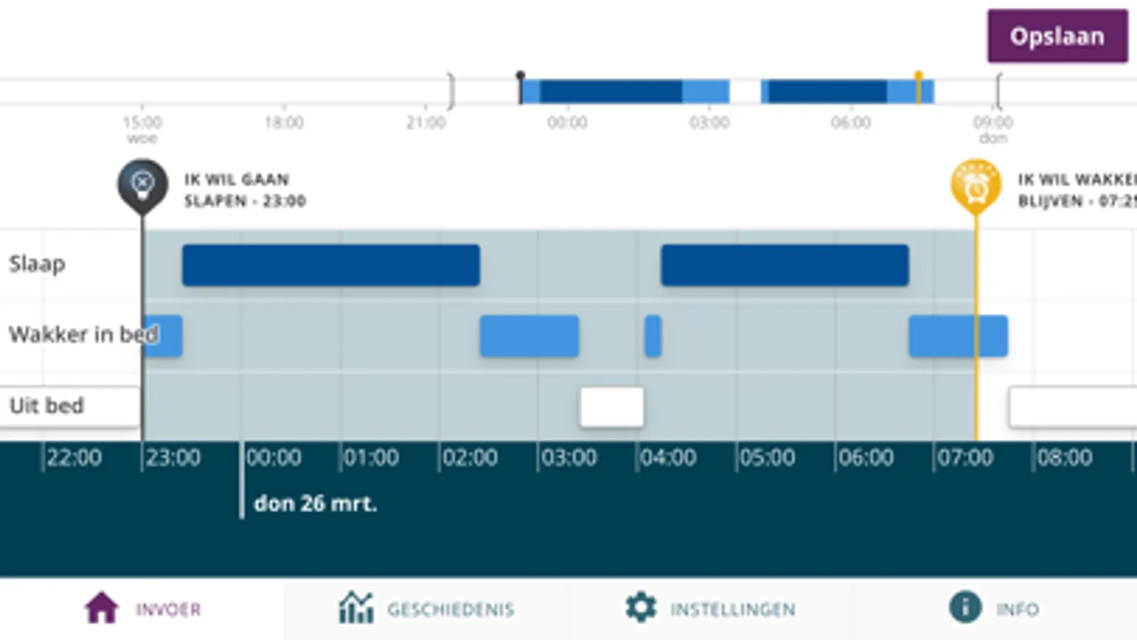 5. In the bottom bar (‘Out of bed’) you indicate the time you were out of bed.