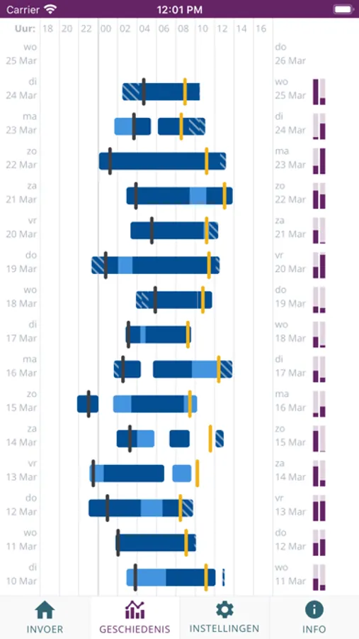 The Sleep Diary is a tool to obtain insight in your sleeping pattern and the quality of your sleep. Each day, you register the sleep of the night before, in the following steps:
