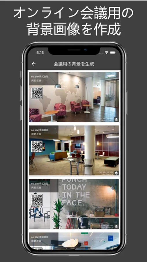 ビジカは「オンライン会議用の名刺背景」を生成できます。