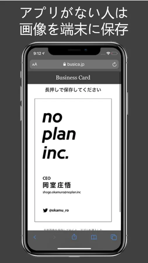 相手がアプリをインストールしてなくてもQRコードから名刺画像を端末に保存できます