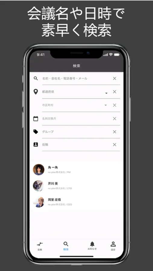 名刺データベースへセキュアに格納され、後からあらゆる項目で検索ができます