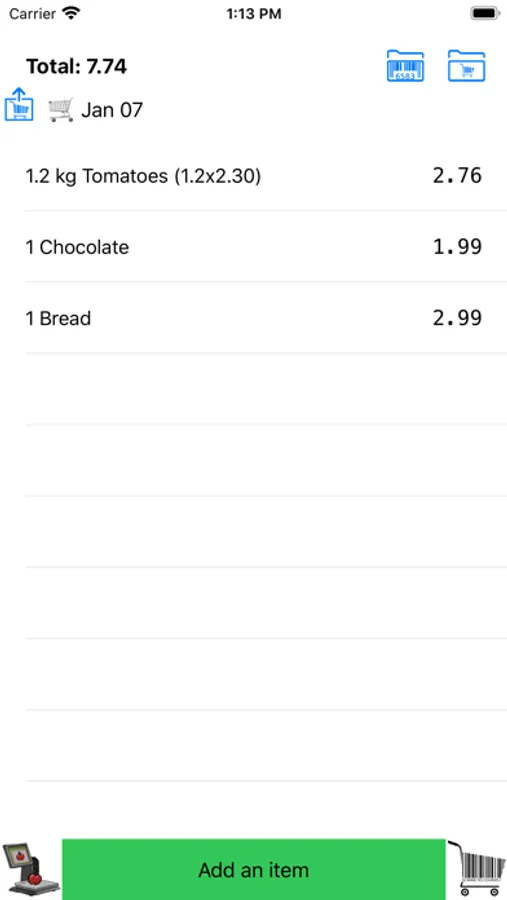 With a simple gesture, you scan the barcode of the product you take, and you see in real time what the receipt will look like!