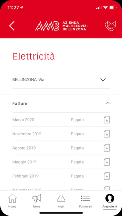 Puoi visualizzare i tuoi consumi già fatturati dei servizi elettricità, telecomunicazioni (wambo) e acqua potabile (se proprietario).