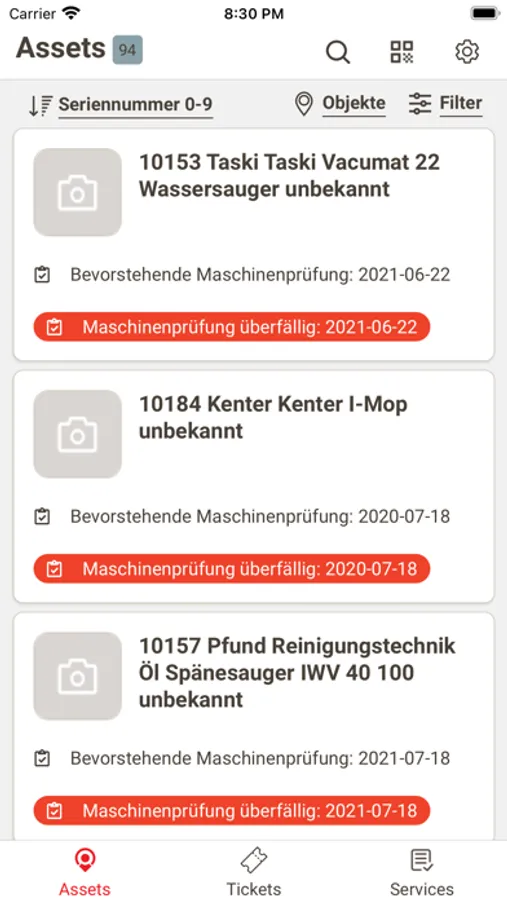 Zu jeder Maschine sind Anleitungen und Informationen hinterlegt. Damit haben Sie auch vor Ort den Überblick
