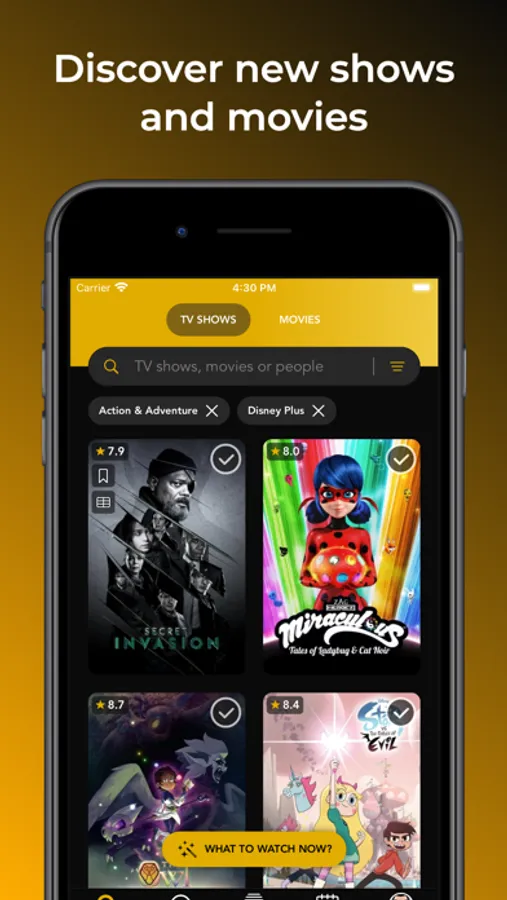 * Discover: explore new shows and movies based on genre, popularity, and more