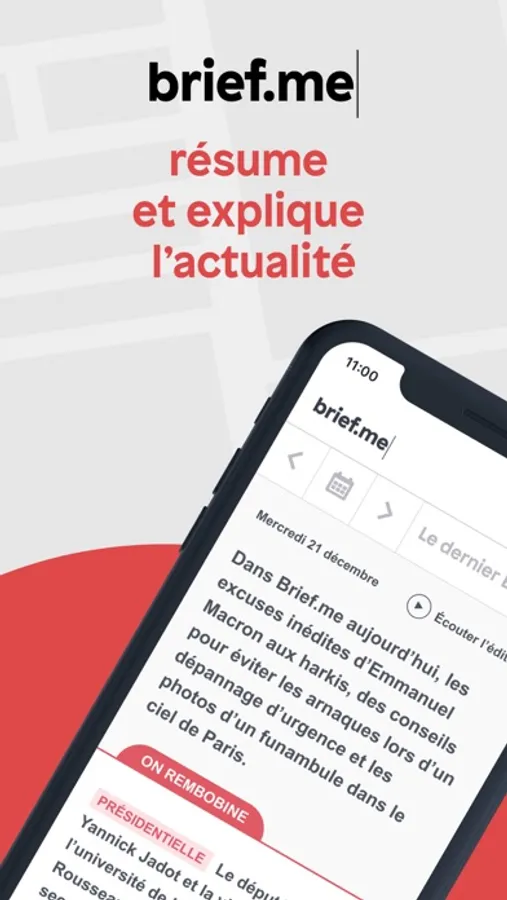 - Brief.me, du lundi au vendredi à 18h30, votre journal en ligne qui explique et met en perspective ce qui s’est passé dans le monde.