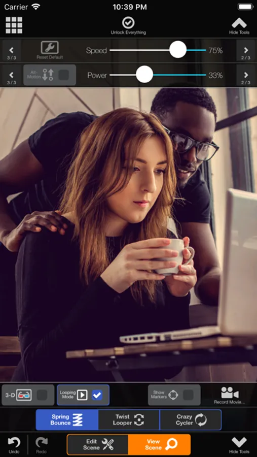 Add bouncy blobs to an image and watch in wonder as they jiggle and bounce! Our space aged military grade technology of customizable effects will shock and amaze you and your friends! Use the gyro or your hands to achieve hauntingly realistic results! Get technical and detail oriented for extremely precise editing. Now with ultra high definition resolution, you're sure to love the Bounce app!