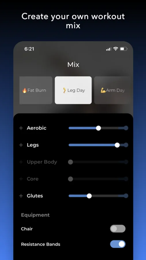 Choose from presets like Leg Day, Cardio Killer, Total Body - No Jumps, or our favorite, Bringing Sexy Back, or create your own mix of aerobic, core, glutes, legs and upper body