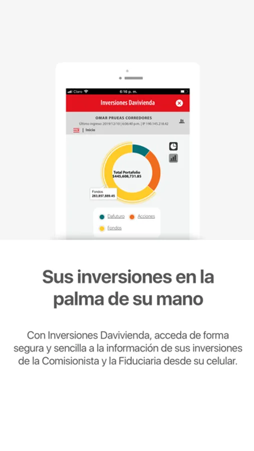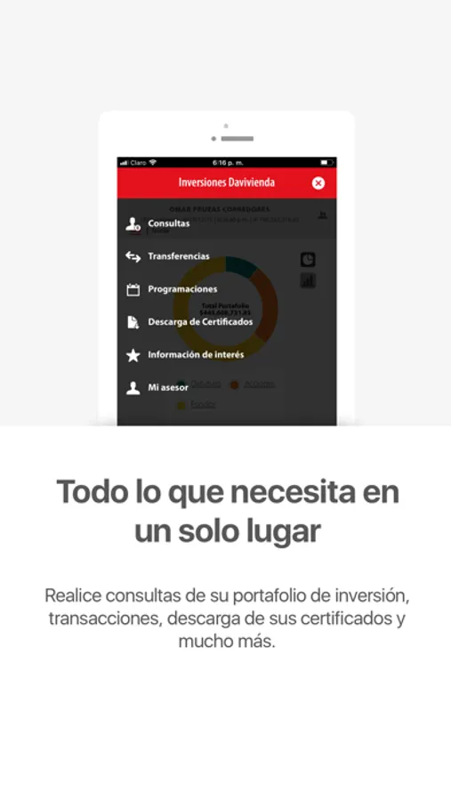 Contar con un APP que permita a los clientes de Fiduciaria Davivienda y Davivienda Corredores realizar consultas y transacciones entre los productos de inversión en un mismo sitio (Visión integral de sus inversiones)