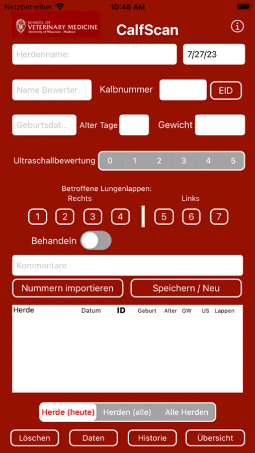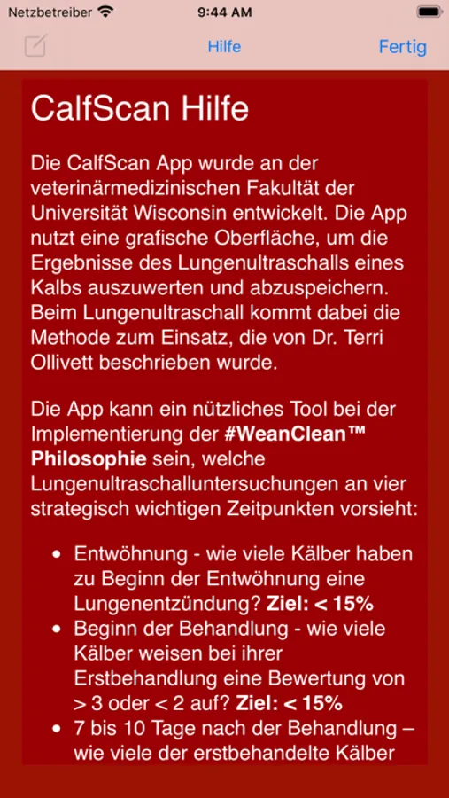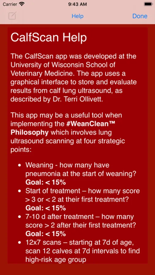The CalfScan app uses a graphical interface to store and evaluate results from calf lung ultrasound, as described by Dr. Terri Ollivett. This app may be a useful tool when implementing the WeanClean Philosophy.