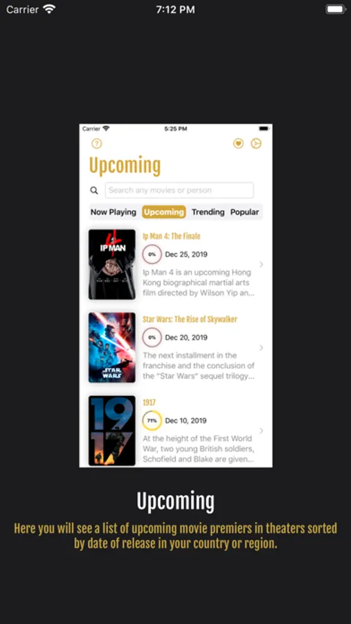 Movie Premiers offers you easy, fast and intuitive access to the latest news in movie releases in cinemas…. and totally FREE.
