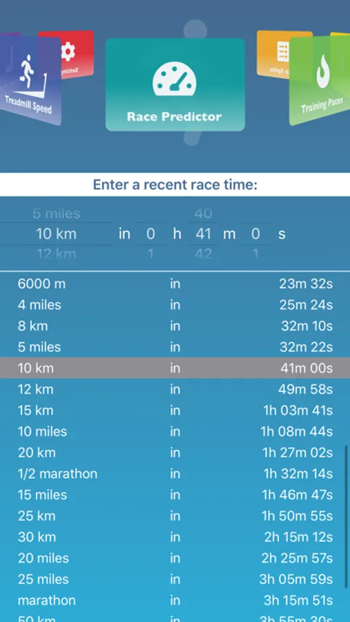 - Race Predictor: Will predict your potential on the most common race distances based on a given one. The automatic calculation uses a dynamic scale but we also made it possible to use your own (single Riegel factor) value. The default gives a realistic prediction, not assuming everyone is a trained high mileage athlete!