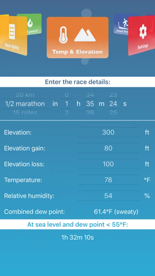 - Evaluate or plan a race by factoring in elevation, elevation gain/loss, temperature and humidity (dew point)