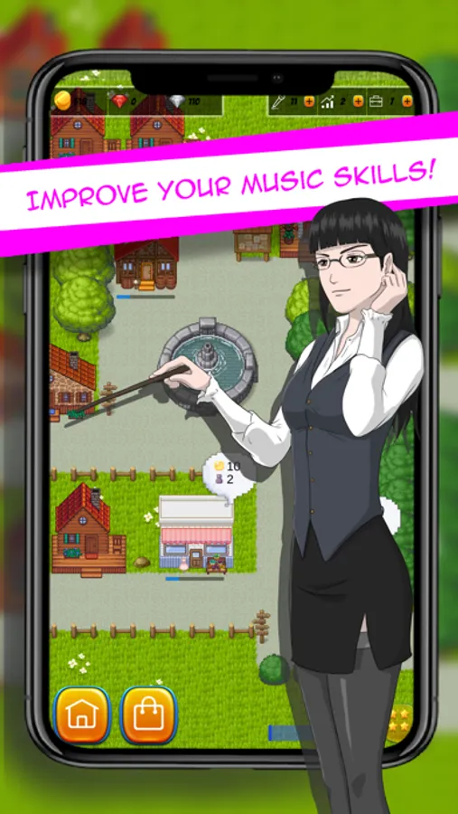 Once you do this, she can perform in a concert for her devoted fans and earn enough money and fame to move to bigger and better towns and cities.