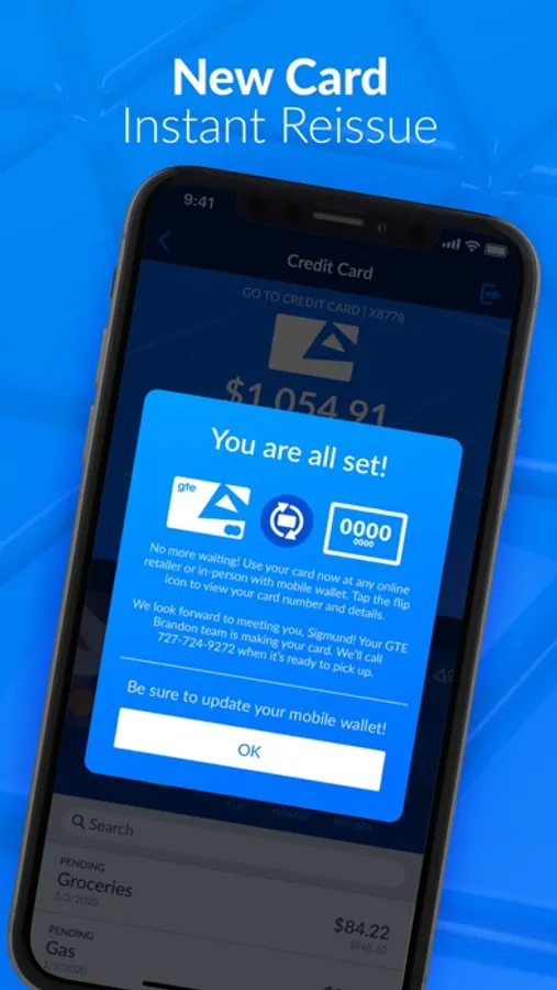 GTE Mobile also makes it super easy to replace and use a new credit card or debit card in seconds. Lost, stolen, damaged or fraud—you no longer have to call, visit a location, or wait for a new card to be mailed. Securely self-serve and generate a brand-new card all within the GTE Mobile App. And, the best part is, you can start using your card immediately. This is not a temporary card—the card created in the app will be identical to your new physical card that you can have mailed, expedited mailed or pick up at a location.