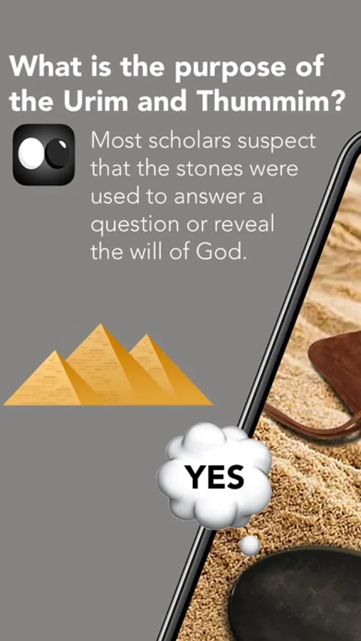 If you have a question, turn to Urim and Thummim for guidance. Simply tap the screen to reveal an answer to your most troubling queries. As described in the heralded novel “The Alchemist” by Paulo Coelho, an old king gave these mystic stones to a young shepherd and instructed him that when an objective question is asked, God will reply using the black stone for "yes" and the white stone for "no". Try them for yourself!