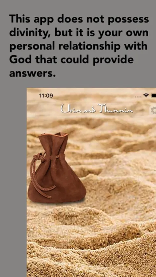 This app does not possess divinity, but it is your own personal relationship with God that could provide answers. We make no claim, explicit or implied as to the historical or translation accuracy, and/or ordained/ethereal nature of this app. It is for novelty use only.