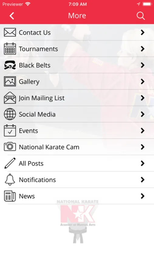 Welcome to the official APP of West Bloomington National Karate Academy of Martial Arts. Established in 1973, National Karate has grown to become the largest and most prestigious martial arts organization in the Midwest. With direct ties to the origins of martial arts in this country, the quality of martial arts instruction students receive at National Karate is second to none. This APP was designed to enhance the student training experience.