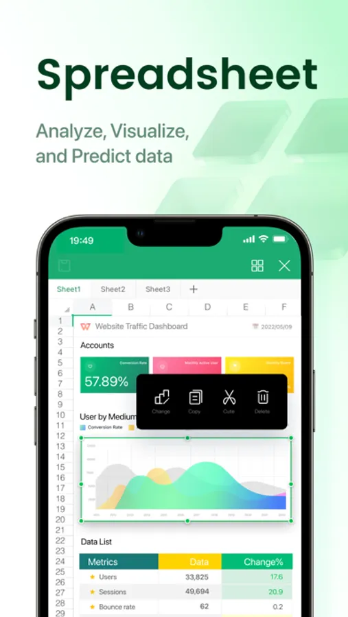 • Complete predefined formulas makes you do basic data analysis and digital operations more conveniently