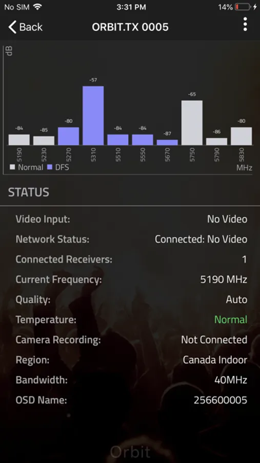 Spectrum Analyzer - Scan local wireless spectrum and configure the optimal 5GHz channel for your Orbit PTZ.