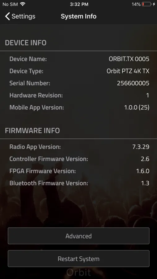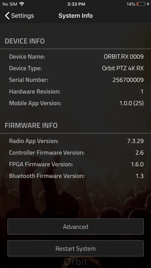 System Info - Check the current firmware version and apply updates when available. Also performs factory resets directly from the app.