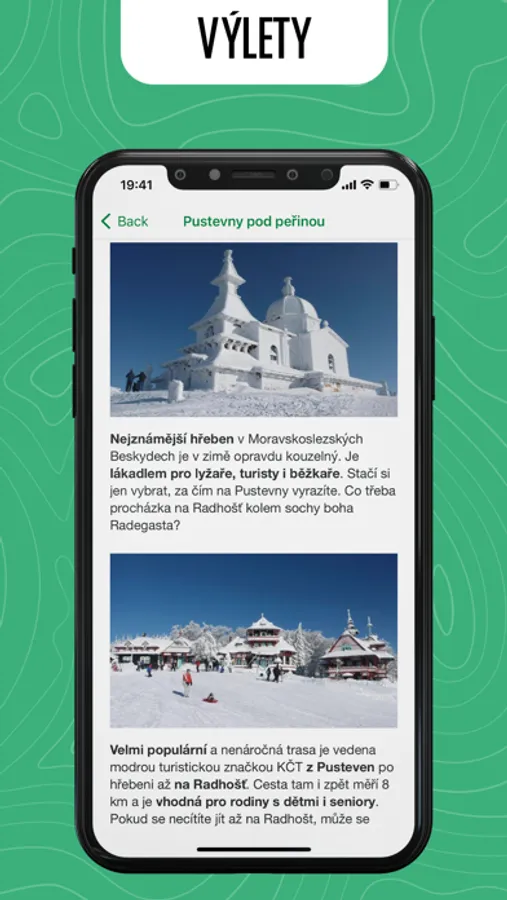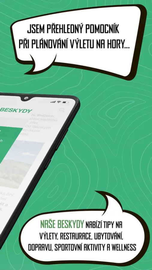 Aplikace Naše Beskydy je skvělým pomocníkem nejen pro turisty. V aplikaci naleznete vrcholy Beskyd, restaurace, horské chaty a ubytování v okolí. Aplikace obsahuje nápady na sportovní aktivity či tipy na výlety. Najdete v ní také aktuality, informace o dopravě a službách.