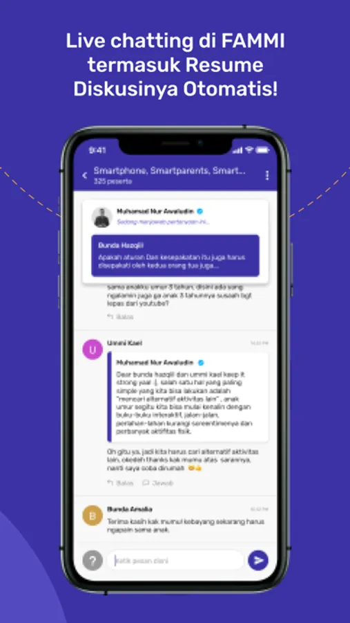 FAMMI menyediakan 2 (dua) layanan edukasi keluarga, yaitu Kelas Online (belajar dan bertanya dalam grup) dan Konsultasi (belajar dan bertanya secara private) dengan para pakar di bidangnya seperti dokter, psikolog, tokoh parenting, konselor, dan para praktisi keluarga lainnya.