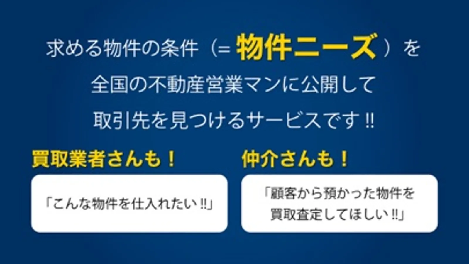 あなたの要望(ニーズ)を登録することで全国の営業マンにアプローチすることができます。