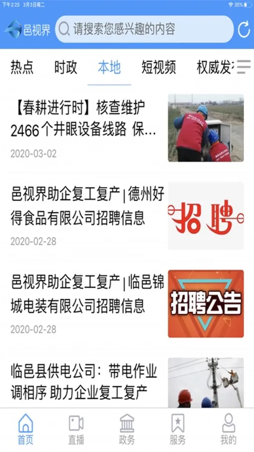 《邑视界》客户端不仅拥有临邑本地更及时、更准确、更权威的新闻信息,而且也汇集了国内、国际等方面最新的资讯内容,同时有效实现了电视大屏与手机小屏的互联互通,集新时代文明实践、电视直播、视频点播、电台直播、电台点播、便民服务、精彩活动等为一体。不仅是传统主流媒体的新型宣传平台,更是宣传临邑、服务临邑、推介临邑的又一重要渠道和窗口。