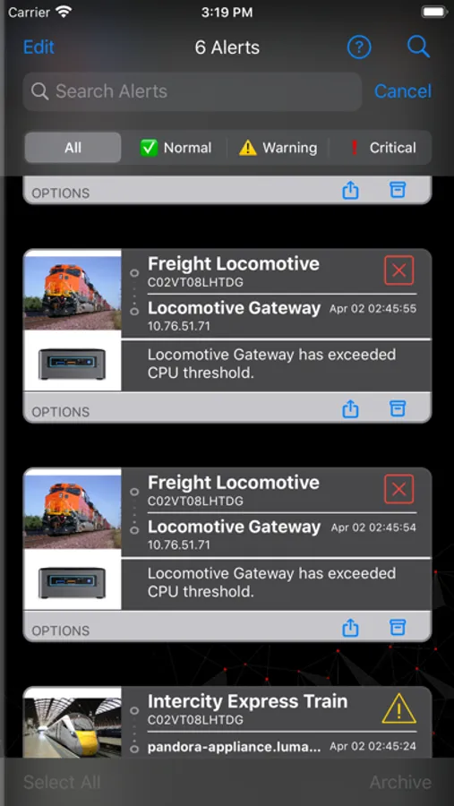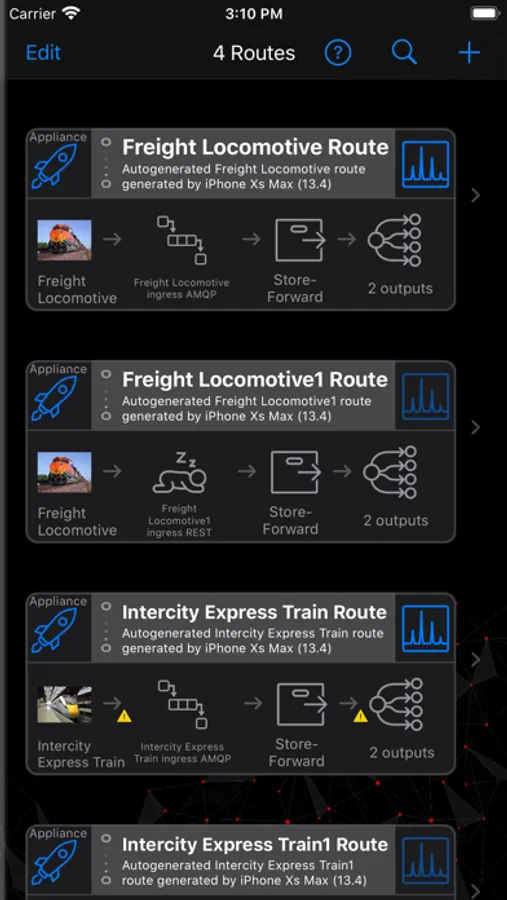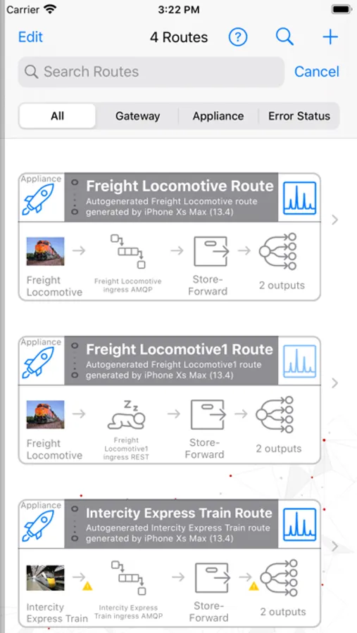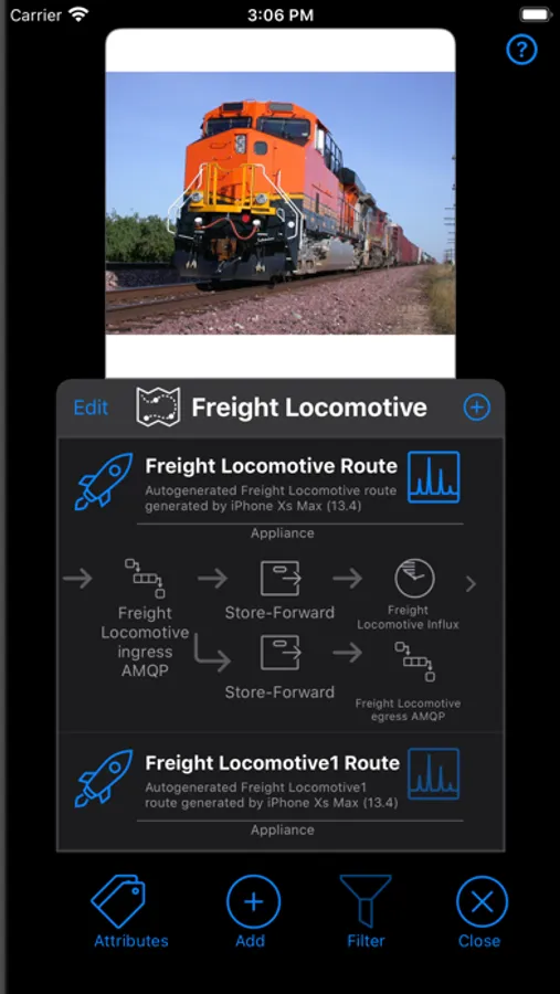 Edge manager is a capability of Lumada Edge Intelligence that allows users to manage assets, devices, data routes and to view alerts through an iOS device. Using the Edge Manager, a system administrator can connect to any number of Lumada Edge Intelligence appliance instances. Once connected, the user has access to the following features of the Edge Manager mobile app: