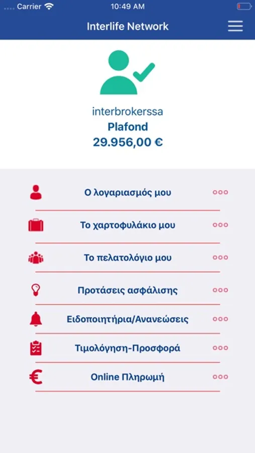 Η mobile εφαρμογή INTERLIFE network απευθύνεται στο δίκτυο των Συνεργατών-Διαμεσολαβητών της INTERLIFE Ασφαλιστικής. Μέσω του κινητού του ο κάθε Διαμεσολαβητής θα μπορεί πλέον να λαμβάνει πληροφορίες και να πραγματοποιεί τις συναλλαγές του με την INTERLIFE.