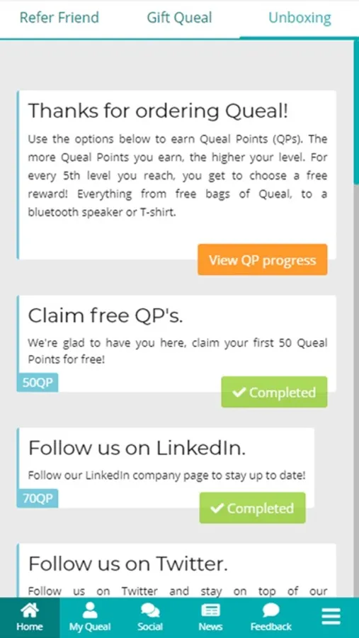 Let others know about Queal with your personal discount code. Share your code on social media, email, or via carrier pigeon.