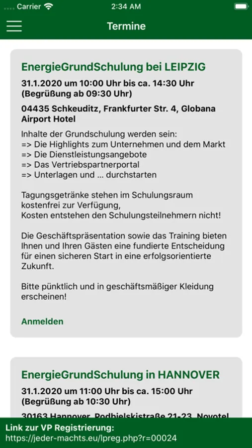 - Termine von online Webinaren bis hin zu regionale Liveschulungen