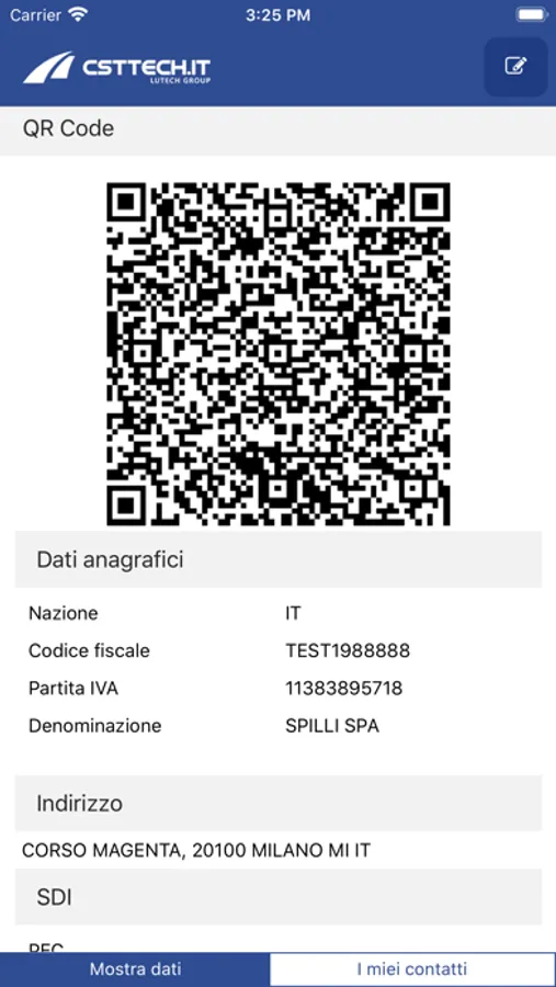 Gestione semplificata dei propri dati di fatturazione e di quelli dei propri contatti con caricamento tramite scansione del QR code autogenerato.