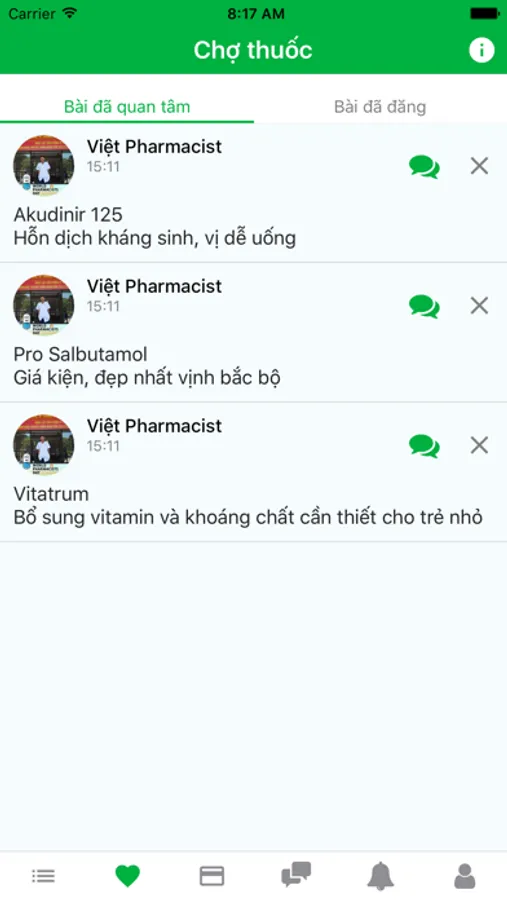 - Lưu lại các sản phẩm thuốc mình đã đăng bài, sản phẩm mình quan tâm.