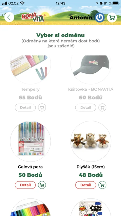 Odměny se liší podle počtu bodů, které je potřeba pro jejich získání. Pokud máte málo bodů zakupte další produkty Bonavita. Přehled odměn i jejich bodové ohodnocení naleznete v této sekci. Zde si lze odměnu zároveň i objednat.