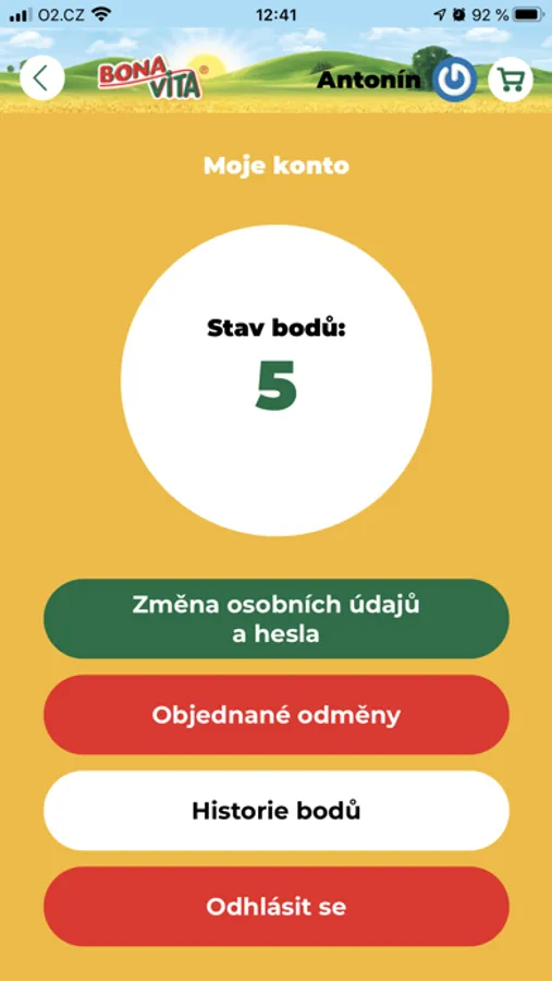 Svůj aktuální počet bodů zjistíte otevřením záložky „Moje konto“. Můžete zde také spravovat svůj účet (změna hesla i osobních údajů). Dále zde uvidíte historii nahrávání vašich bodů nebo složku s odměnami, které jste již uplatnili.