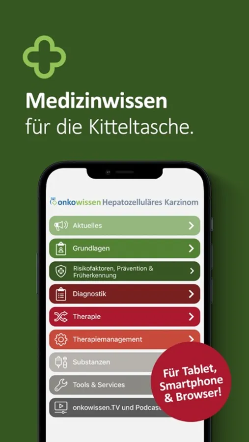 Diese App ist nur für Fachkreise mit einem onkowissen.de-Login bestimmt. Die App dient ausschließlich als Informationsgrundlage für die Behandlung des hepatozellulären Karzinoms.