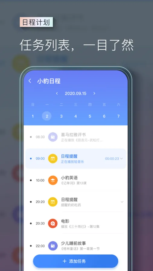 - 支持查看豹小秘mini机器人每天的日程列表,帮助您进行时间规划