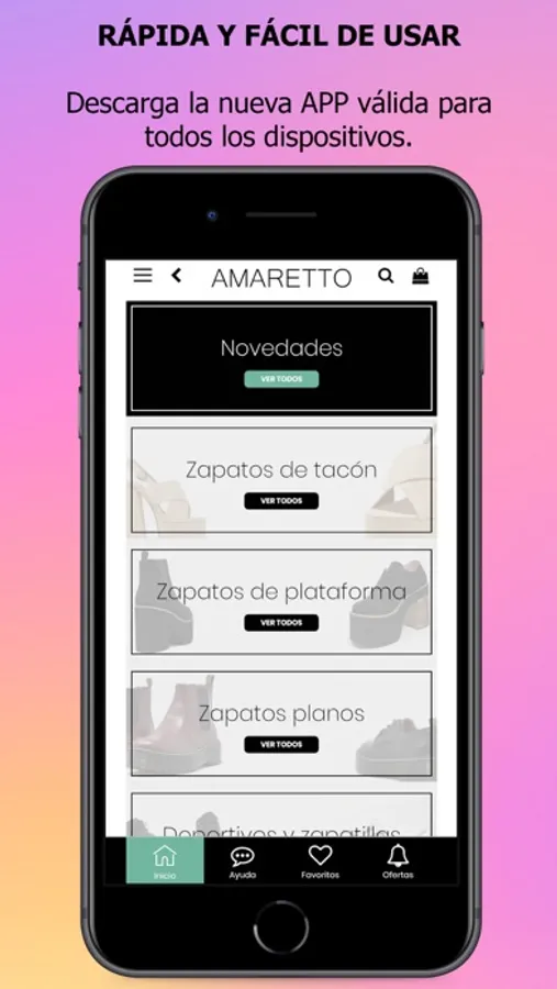 ¡Comprar zapatos de plataforma desde esa aburrida clase de la universidad, comprar zapatos planos desde el sofá de tu casa mientras ves tu serie favorita o comprar botas de tacón mientras estás en el trabajo, es posible, fácil y mucho más sencillo con la app!