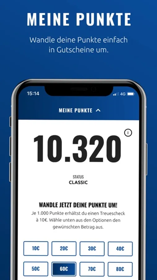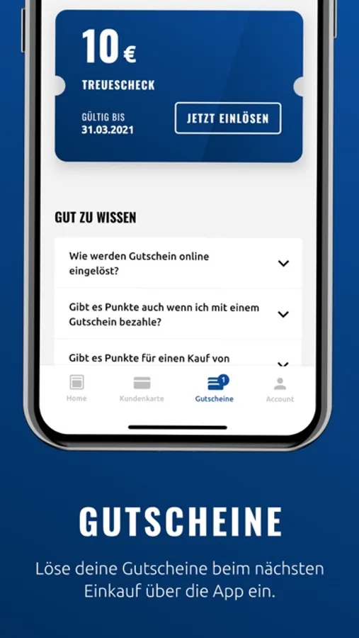 - Punkte, Gutscheine, Shoppen: Sammle Bonuspunkte, wandle sie in Gutscheine um und löse sie beim Einkauf im Store oder Online ganz einfach ein.