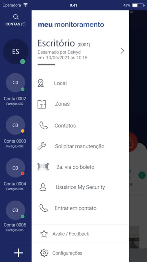 O Meu Monitoramento é um aplicativo onde o cliente monitorado pode acompanhar diretamente via celular ou tablet todas as atividades do seu sistema de segurança e automação. Por meio do aplicativo, é possível saber o status do painel de alarme, armá-lo e desarmá-lo, visualizar as câmeras ao vivo, verificar eventos e ordens de serviço abertas, além de realizar chamadas telefônicas para contatos cadastrados no seu perfil. É a segurança que você precisa na palma da sua mão.