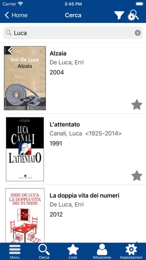 • Cambiare ordinamento dei risultati: da rilevanza a titolo o ad autore o ad anno di pubblicazione