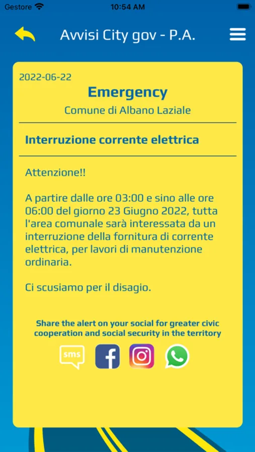 CITY GOV service to receive Emergency and Safety Notices from your registered Municipality (Italy) or request them on demand for other registered Municipalities. Unidirectional notices from the Municipality to citizens. 100% privacy. The service can also be activated in the municipalities of Europe, on request.