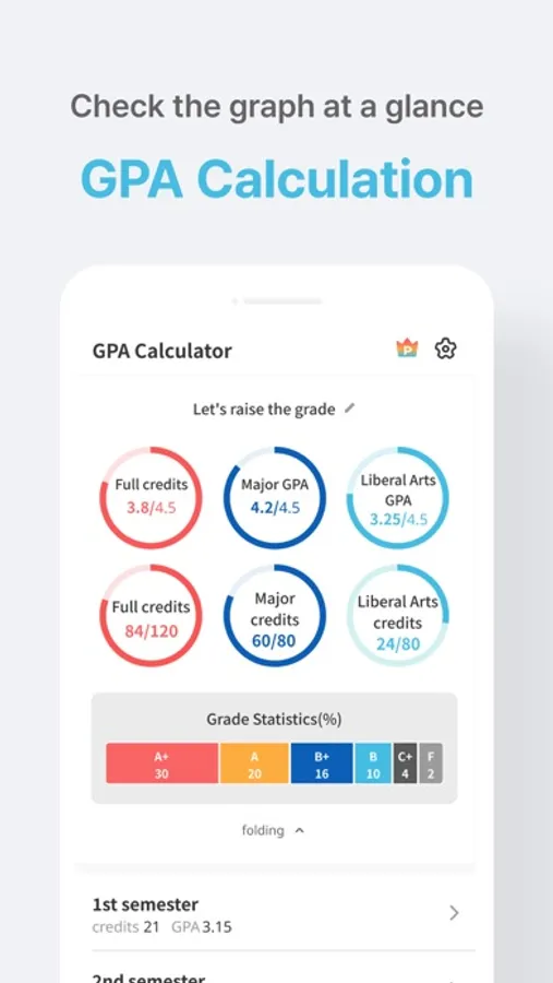 2. Credit calculation & grade management that can be checked at a glance with a graph