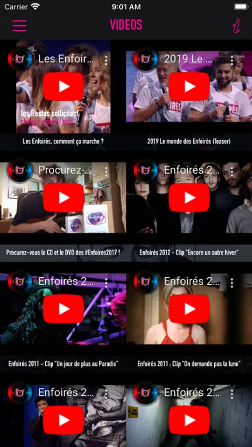 Application officielle des Enfoirés, projet solidaire des Restos du Cœur.