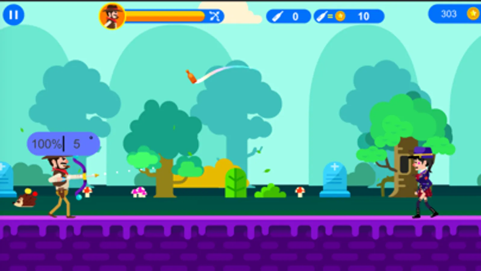 4. Shooting the bottles: hit the flying bottles.